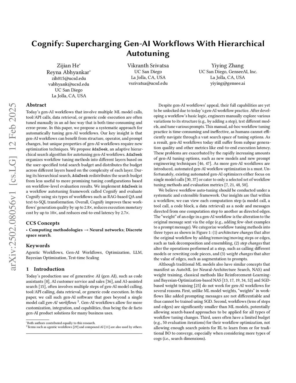 Cognify: Supercharging Gen-AI Workflows With Hierarchical Autotuning