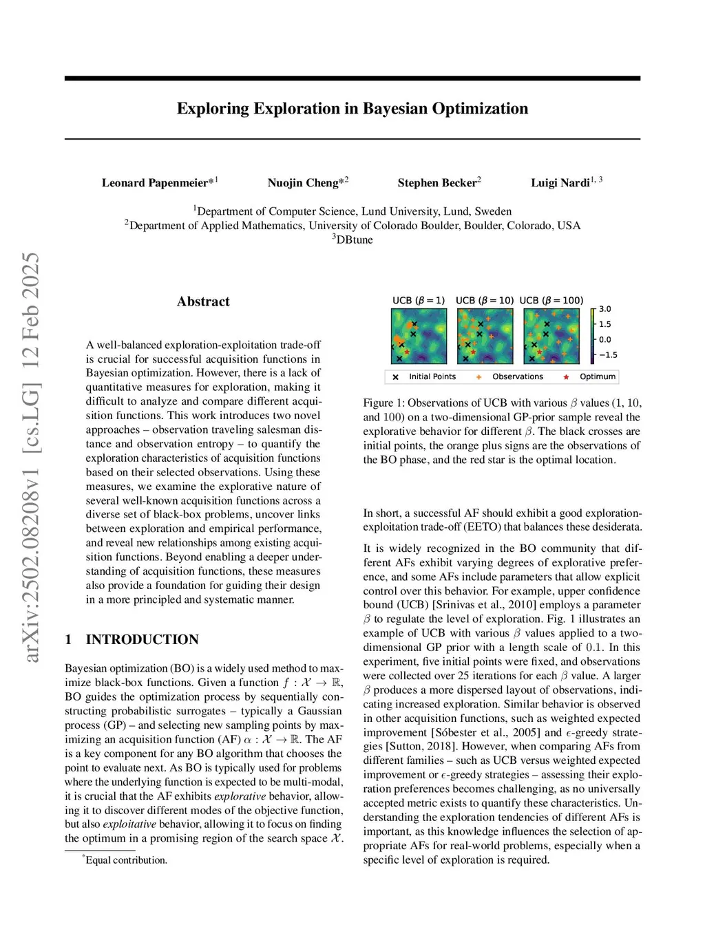 A well-balanced exploration-exploitation trade-off is crucial for successful acquisition functions in Bayesian optimization. However, there is a lack of quantitative measures for exploration, making it difficult to analyze and compare different acquisition functions. This work introduces two novel approaches - observation traveling salesman distance and observation entropy - to quantify the exploration characteristics of acquisition functions based on their selected observations. Using these measures, we examine the explorative nature of several well-known acquisition functions across a diverse set of black-box problems, uncover links between exploration and empirical performance, and reveal new relationships among existing acquisition functions. Beyond enabling a deeper understanding of acquisition functions, these measures also provide a foundation for guiding their design in a more principled and systematic manner.