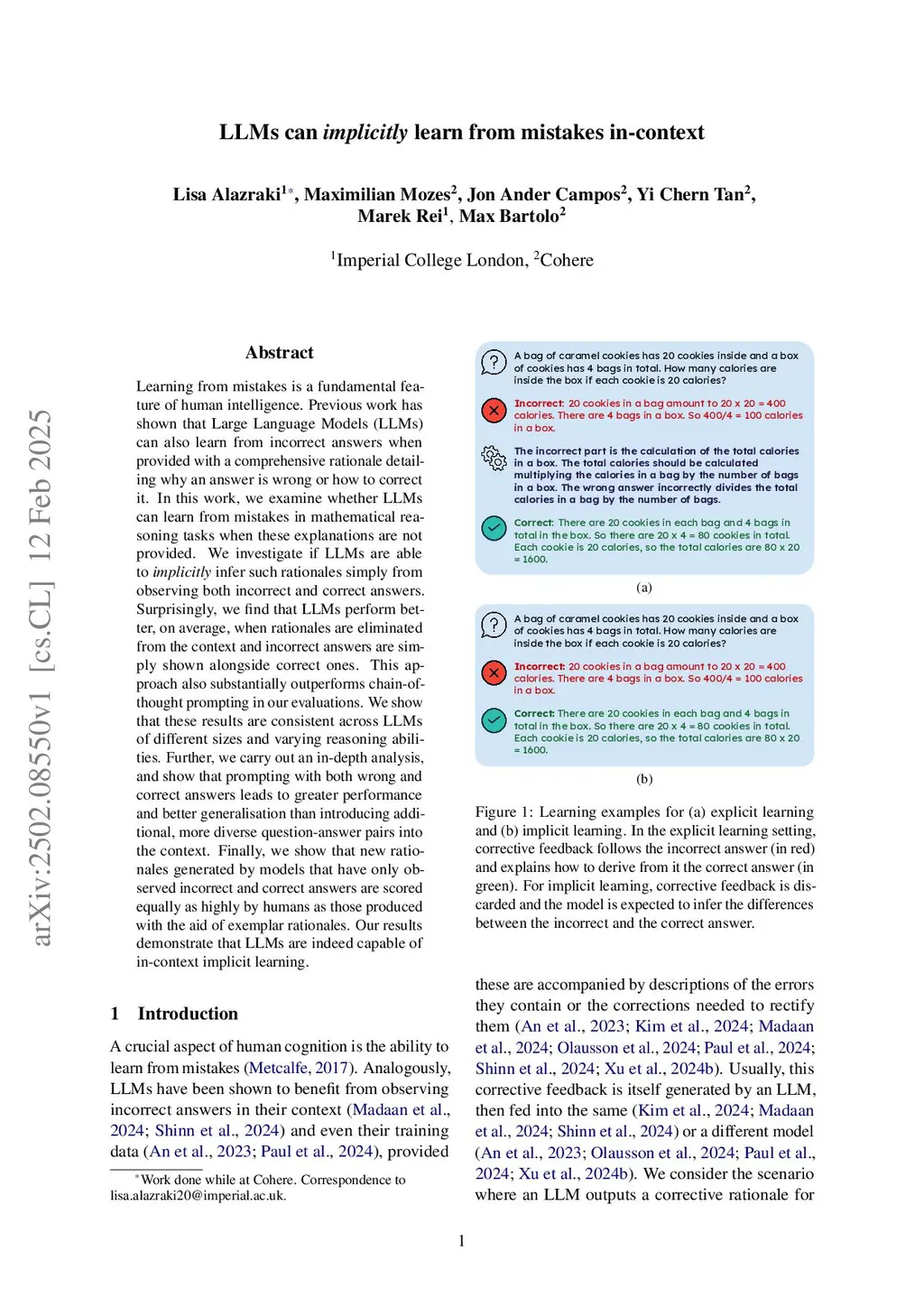 No Need for Explanations: LLMs can implicitly learn from mistakes in-context