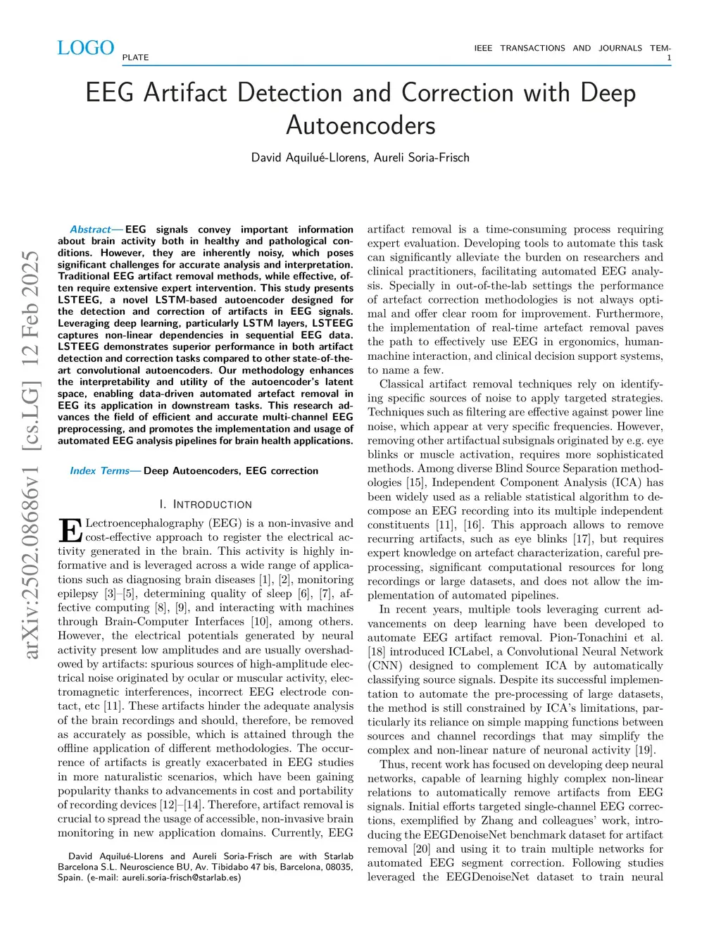 EEG Artifact Detection and Correction with Deep Autoencoders