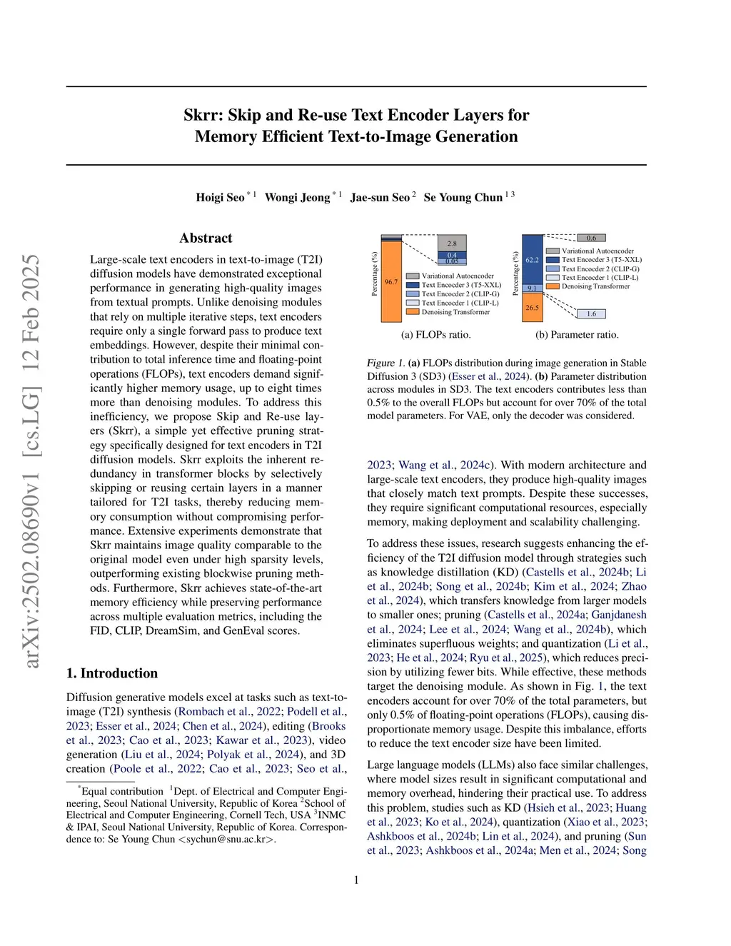 Skrr: Skip and Re-use Text Encoder Layers for Memory Efficient Text-to-Image Generation