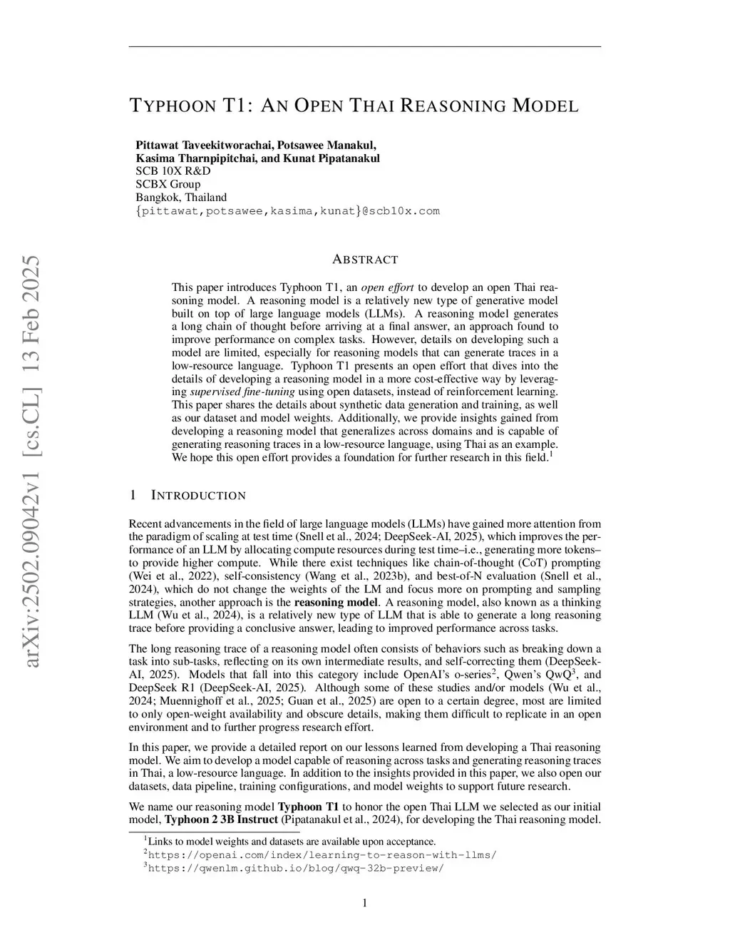Typhoon T1: An Open Thai Reasoning Model