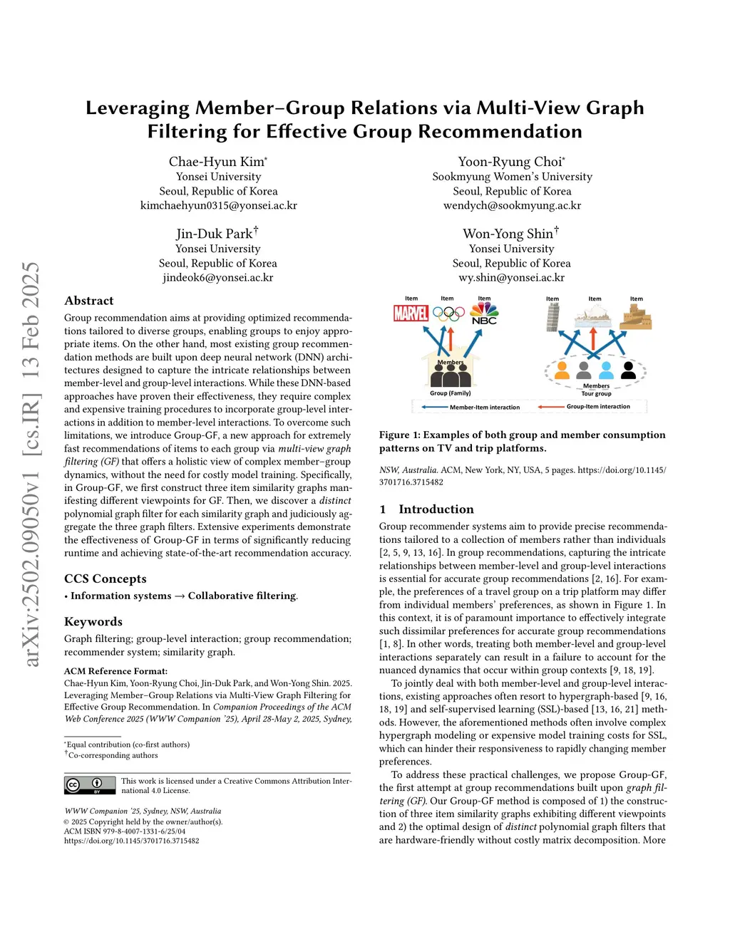 Leveraging Member-Group Relations via Multi-View Graph Filtering for Effective Group Recommendation