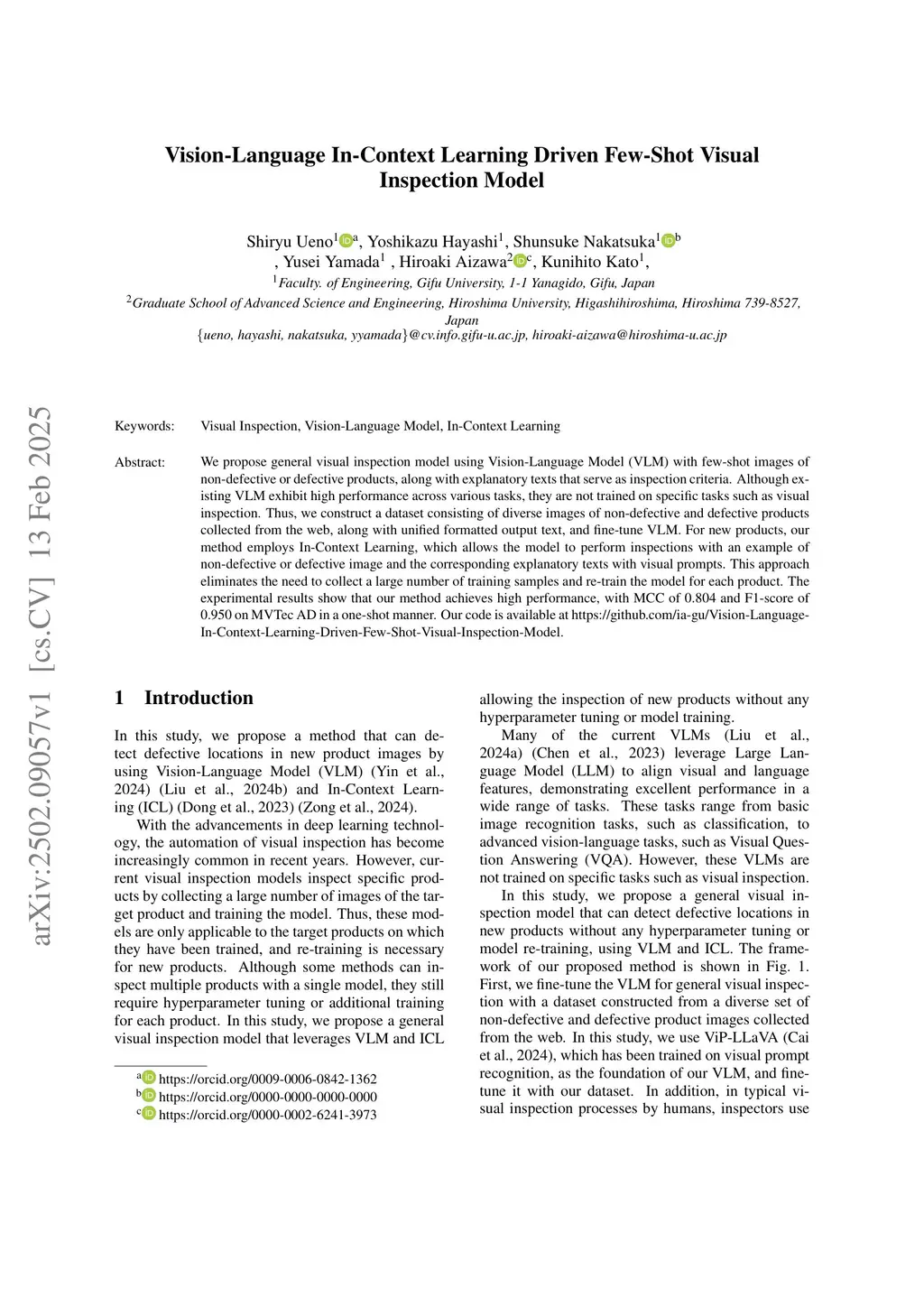 Vision-Language In-Context Learning Driven Few-Shot Visual Inspection Model