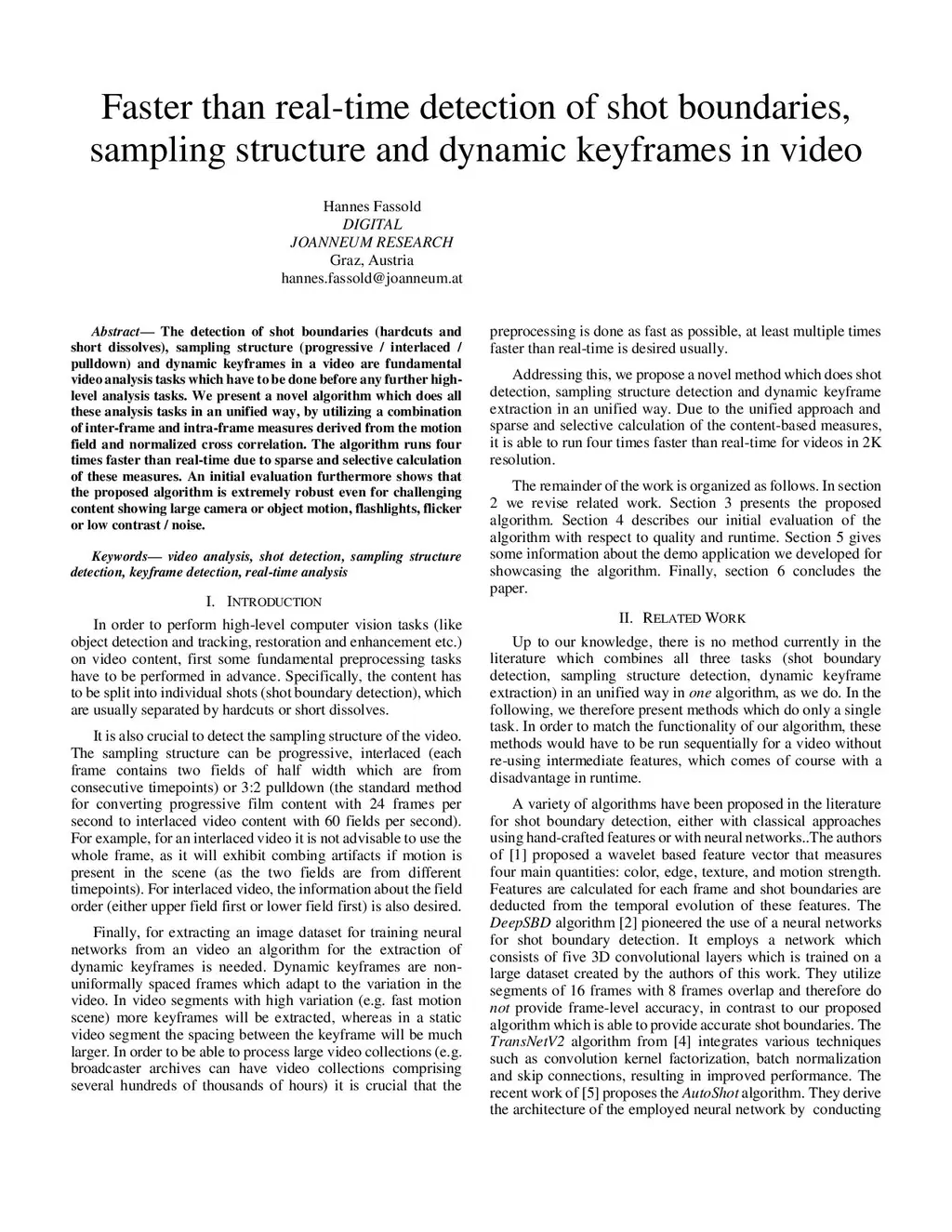 Faster than real-time detection of shot boundaries, sampling structure and dynamic keyframes in video