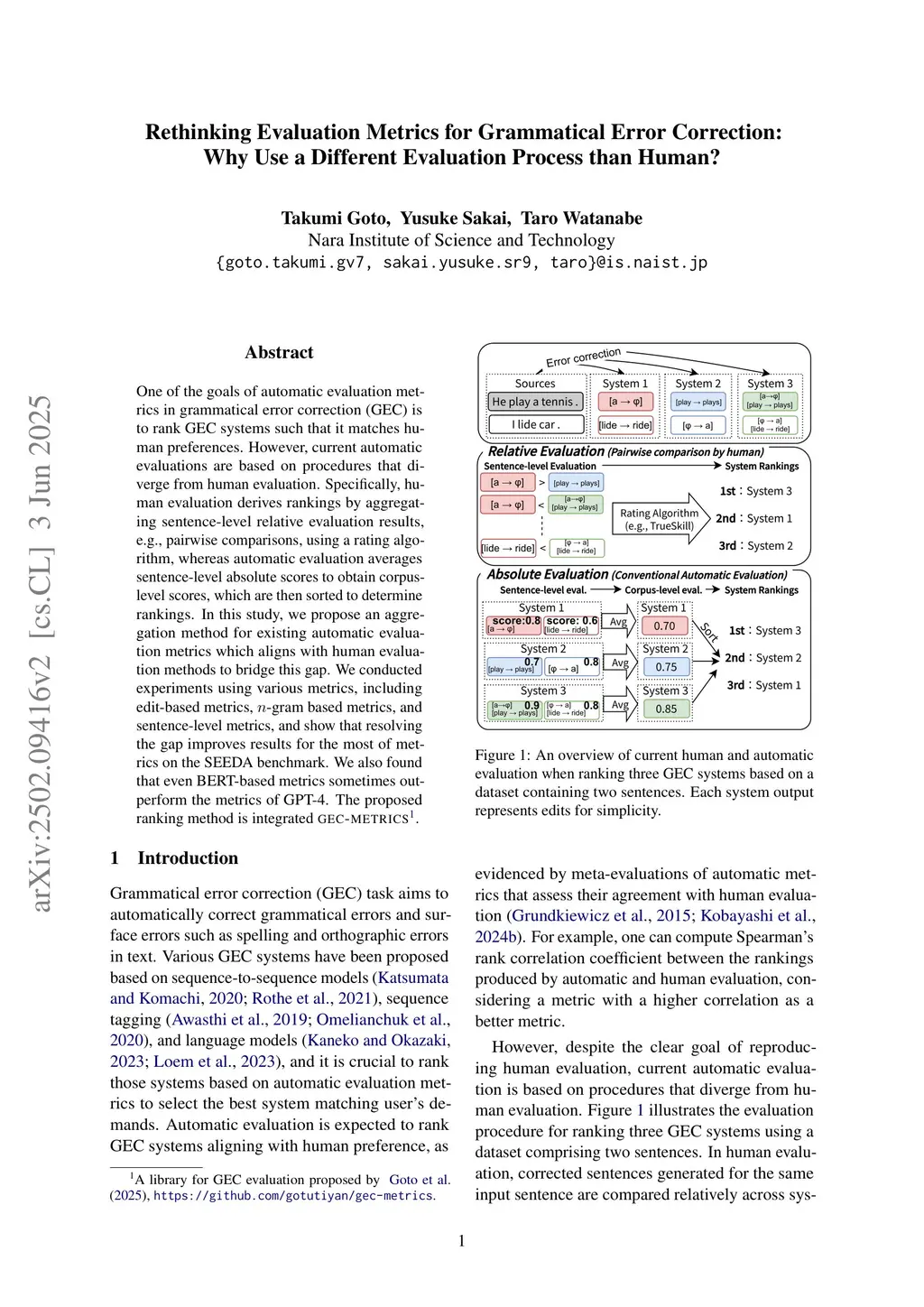 One of the goals of automatic evaluation metrics in grammatical error correction (GEC) is to rank GEC systems such that it matches human preferences. However, current automatic evaluations are based on procedures that diverge from human evaluation. Specifically, human evaluation derives rankings by aggregating sentence-level relative evaluation results, e.g., pairwise comparisons, using a rating algorithm, whereas automatic evaluation averages sentence-level absolute scores to obtain corpus-level scores, which are then sorted to determine rankings. In this study, we propose an aggregation method for existing automatic evaluation metrics which aligns with human evaluation methods to bridge this gap. We conducted experiments using various metrics, including edit-based metrics, n-gram based metrics, and sentence-level metrics, and show that resolving the gap improves results for the most of metrics on the SEEDA benchmark. We also found that even BERT-based metrics sometimes outperform the metrics of GPT-4. The proposed ranking method is integrated gec-metrics.