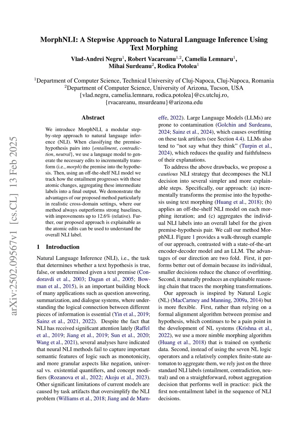 MorphNLI: A Stepwise Approach to Natural Language Inference Using Text Morphing