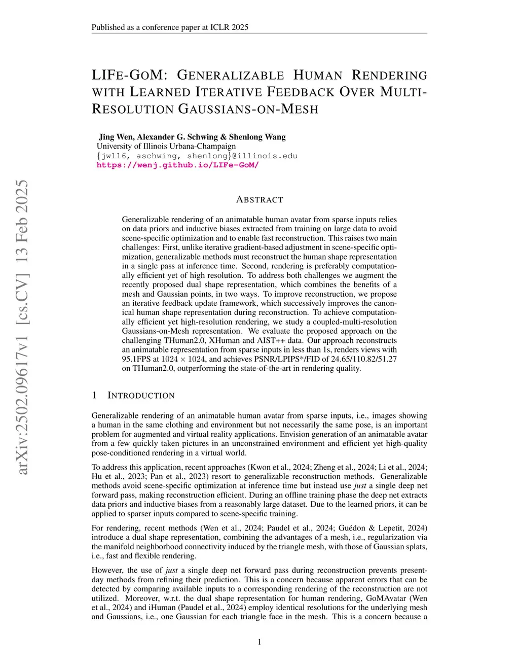 LIFe-GoM: Generalizable Human Rendering with Learned Iterative Feedback Over Multi-Resolution Gaussians-on-Mesh