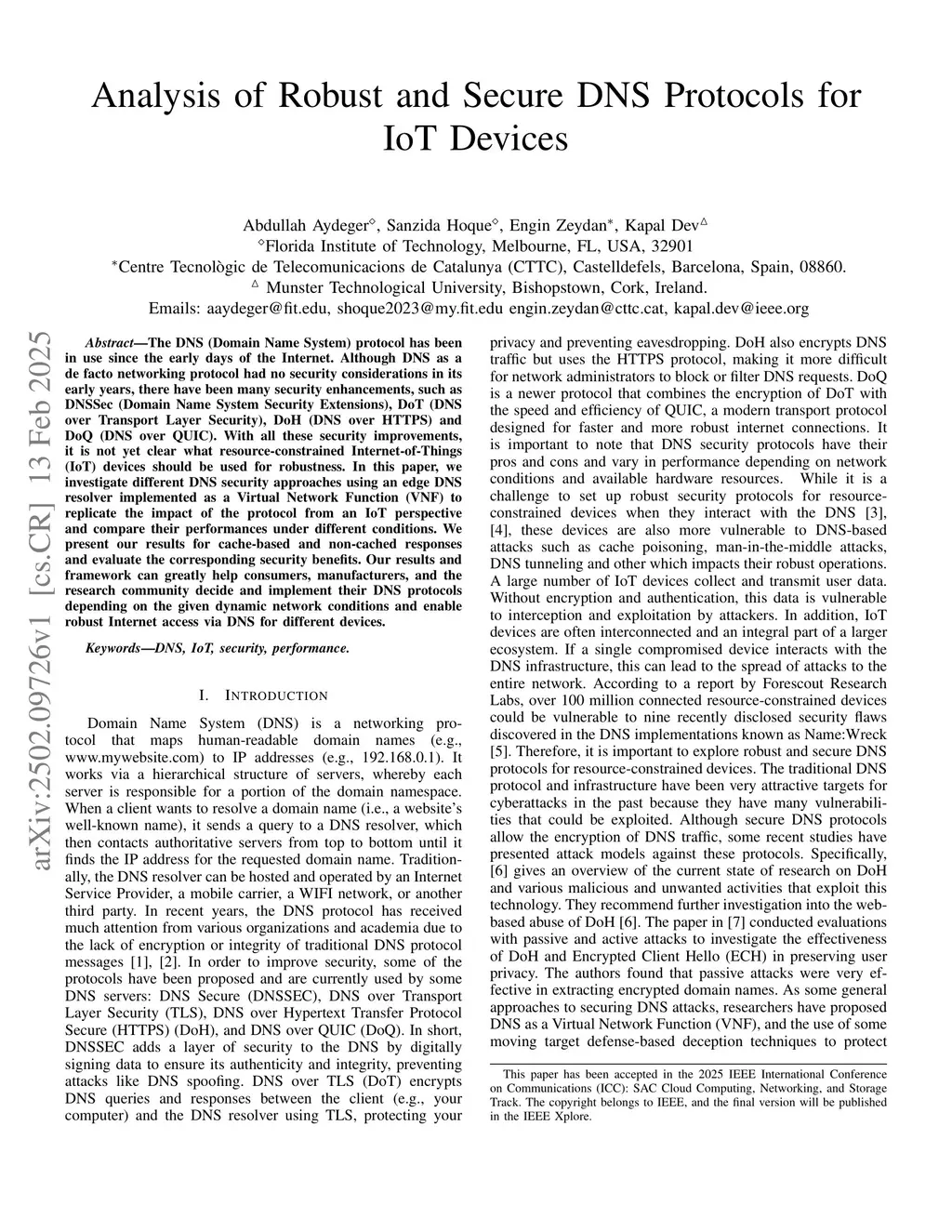 Analysis of Robust and Secure DNS Protocols for IoT Devices