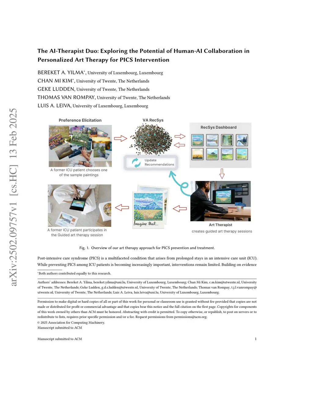 Post-intensive care syndrome (PICS) is a multifaceted condition that arises from prolonged stays in an intensive care unit (ICU). While preventing PICS among ICU patients is becoming increasingly important, interventions remain limited. Building on evidence supporting the effectiveness of art exposure in addressing the psychological aspects of PICS, we propose a novel art therapy solution through a collaborative Human-AI approach that enhances personalized therapeutic interventions using state-of-the-art Visual Art Recommendation Systems. We developed two Human-in-the-Loop (HITL) personalization methods and assessed their impact through a large-scale user study (N=150). Our findings demonstrate that this Human-AI collaboration not only enhances the personalization and effectiveness of art therapy but also supports therapists by streamlining their workload. While our study centres on PICS intervention, the results suggest that human-AI collaborative Art therapy could potentially benefit other areas where emotional support is critical, such as cases of anxiety and depression.