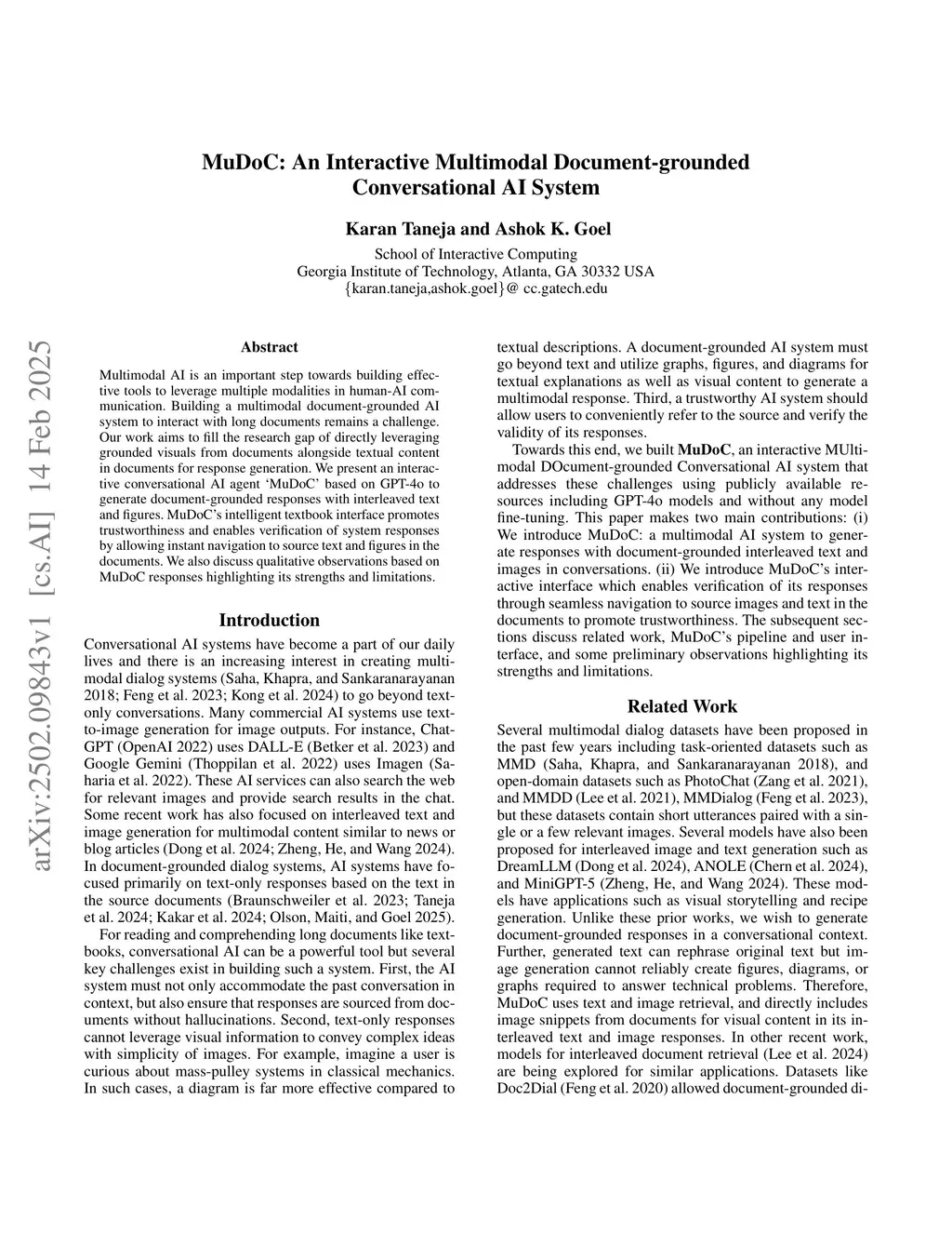 MuDoC: An Interactive Multimodal Document-grounded Conversational AI System