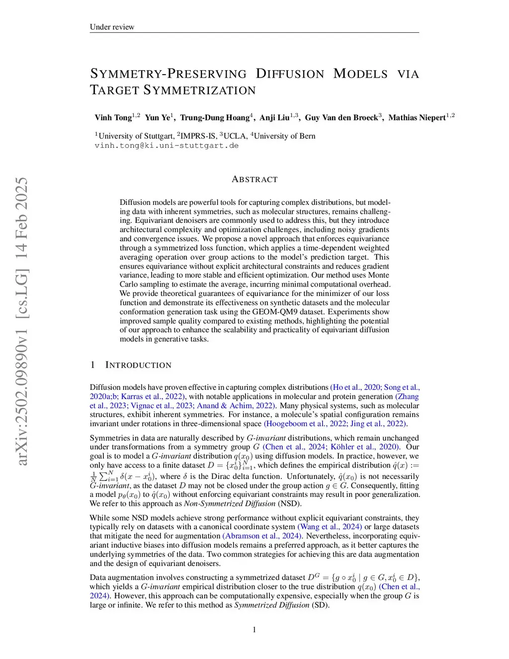 In domains such as molecular and protein generation, physical systems exhibit inherent symmetries that are critical to model. Two main strategies have emerged for learning invariant distributions: designing equivariant network architectures and using data augmentation to approximate equivariance. While equivariant architectures preserve symmetry by design, they often involve greater complexity and pose optimization challenges. Data augmentation, on the other hand, offers flexibility but may fall short in fully capturing symmetries. Our framework enhances both approaches by reducing training variance and providing a provably lower-variance gradient estimator. We achieve this by interpreting data augmentation as a Monte Carlo estimator of the training gradient and applying Rao-Blackwellization. This leads to more stable optimization, faster convergence, and reduced variance, all while requiring only a single forward and backward pass per sample. We also present a practical implementation of this estimator incorporating the loss and sampling procedure through a method we call Orbit Diffusion. Theoretically, we guarantee that our loss admits equivariant minimizers. Empirically, Orbit Diffusion achieves state-of-the-art results on GEOM-QM9 for molecular conformation generation, improves crystal structure prediction, and advances text-guided crystal generation on the Perov-5 and MP-20 benchmarks. Additionally, it enhances protein designability in protein structure generation. Code is available at:this https URL.