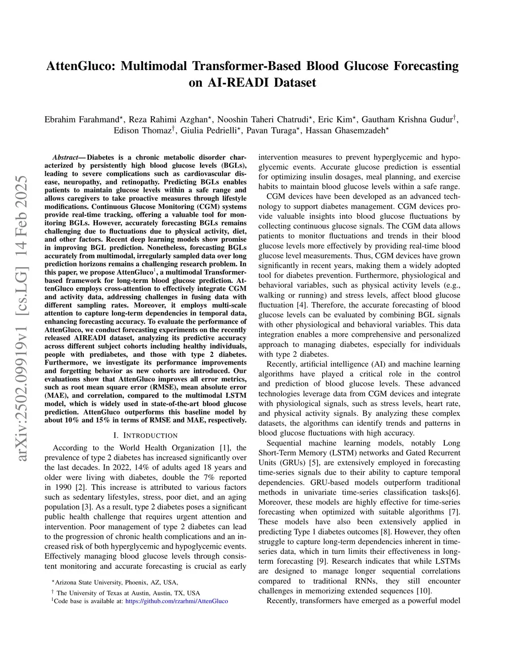 AttenGluco: Multimodal Transformer-Based Blood Glucose Forecasting on AI-READI Dataset