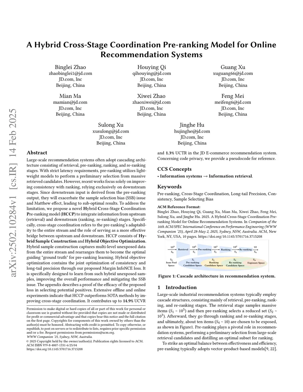 A Hybrid Cross-Stage Coordination Pre-ranking Model for Online Recommendation Systems