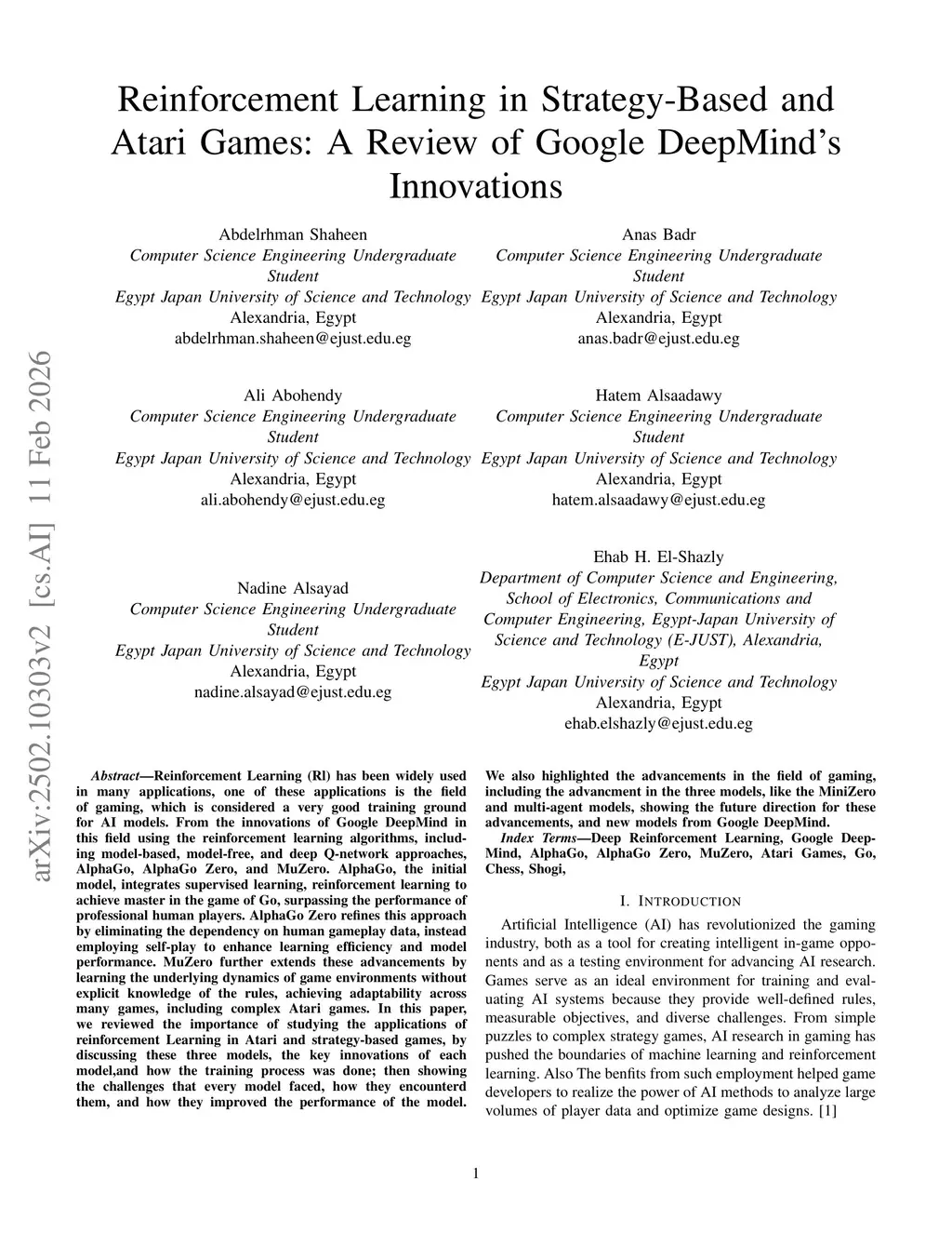 Reinforcement Learning (RL) has been widely used in many applications, particularly in gaming, which serves as an excellent training ground for AI models. Google DeepMind has pioneered innovations in this field, employing reinforcement learning algorithms, including model-based, model-free, and deep Q-network approaches, to create advanced AI models such as AlphaGo, AlphaGo Zero, and MuZero. AlphaGo, the initial model, integrates supervised learning and reinforcement learning to master the game of Go, surpassing professional human players. AlphaGo Zero refines this approach by eliminating reliance on human gameplay data, instead utilizing self-play for enhanced learning efficiency. MuZero further extends these advancements by learning the underlying dynamics of game environments without explicit knowledge of the rules, achieving adaptability across various games, including complex Atari games. This paper reviews the significance of reinforcement learning applications in Atari and strategy-based games, analyzing these three models, their key innovations, training processes, challenges encountered, and improvements made. Additionally, we discuss advancements in the field of gaming, including MiniZero and multi-agent models, highlighting future directions and emerging AI models from Google DeepMind.