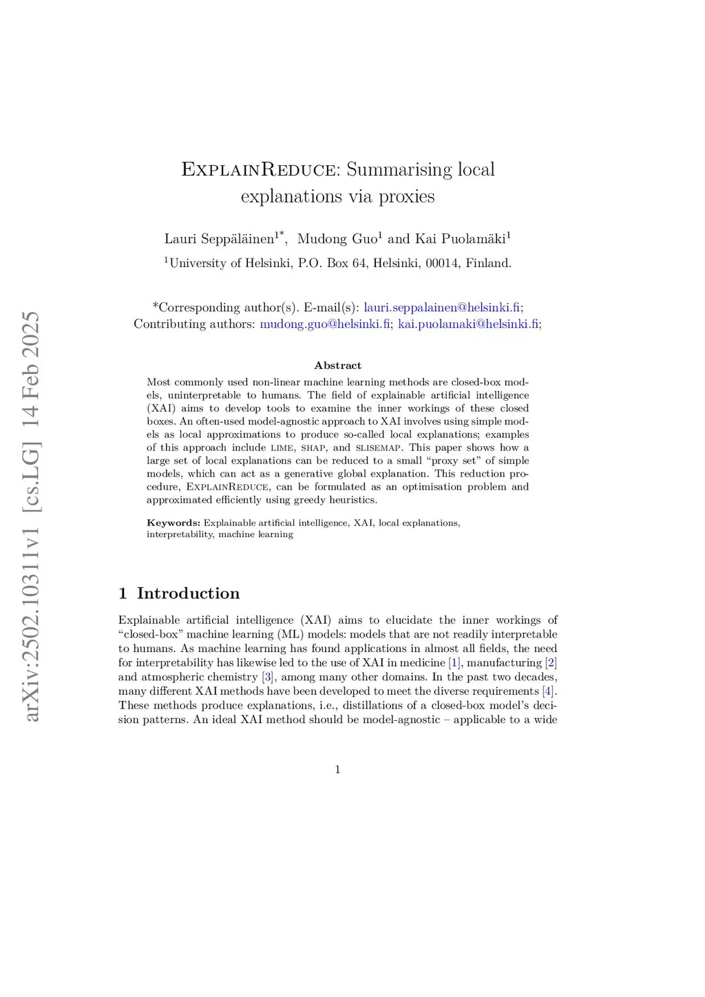 Most commonly used non-linear machine learning methods are closed-box models, uninterpretable to humans. The field of explainable artificial intelligence (XAI) aims to develop tools to examine the inner workings of these closed boxes. An often-used model-agnostic approach to XAI involves using simple models as local approximations to produce so-called local explanations; examples of this approach include LIME, SHAP, and SLISEMAP. This paper shows how a large set of local explanations can be reduced to a small "proxy set" of simple models, which can act as a generative global explanation. This reduction procedure, ExplainReduce, can be formulated as an optimisation problem and approximated efficiently using greedy heuristics. We show that, for many problems, as few as five explanations can faithfully emulate the closed-box model and that our reduction procedure is competitive with other model aggregation methods.