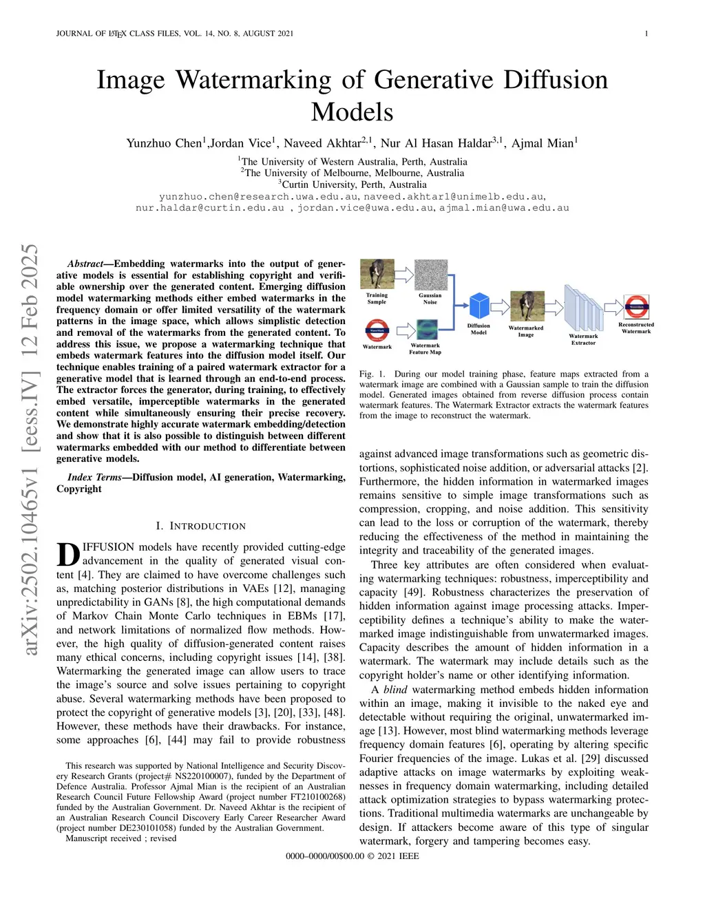Embedding watermarks into the output of generative models is essential for establishing copyright and verifiable ownership over the generated content. Emerging diffusion model watermarking methods either embed watermarks in the frequency domain or offer limited versatility of the watermark patterns in the image space, which allows simplistic detection and removal of the watermarks from the generated content. To address this issue, we propose a watermarking technique that embeds watermark features into the diffusion model itself. Our technique enables training of a paired watermark extractor for a generative model that is learned through an end-to-end process. The extractor forces the generator, during training, to effectively embed versatile, imperceptible watermarks in the generated content while simultaneously ensuring their precise recovery. We demonstrate highly accurate watermark embedding/detection and show that it is also possible to distinguish between different watermarks embedded with our method to differentiate between generative models.