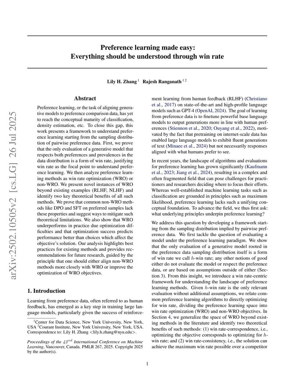 Preference learning made easy: Everything should be understood through win rate