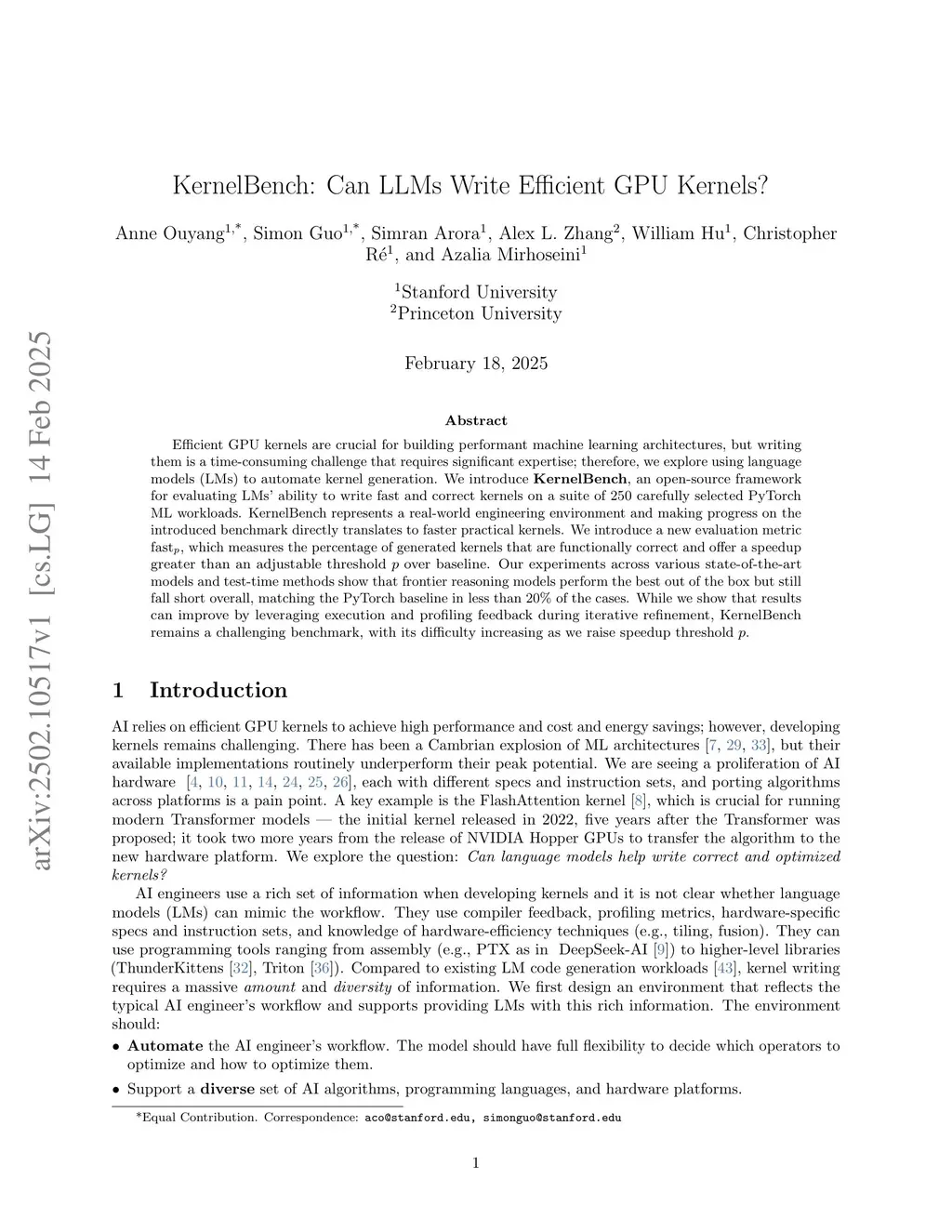 KernelBench: Can LLMs Write Efficient GPU Kernels?