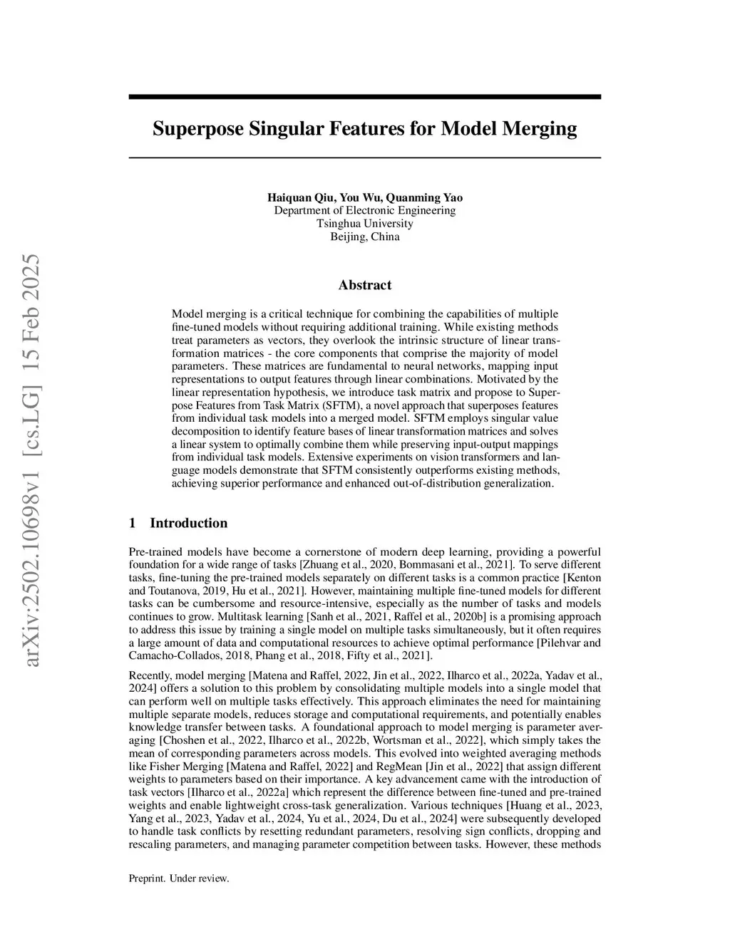 Superpose Task-specific Features for Model Merging
