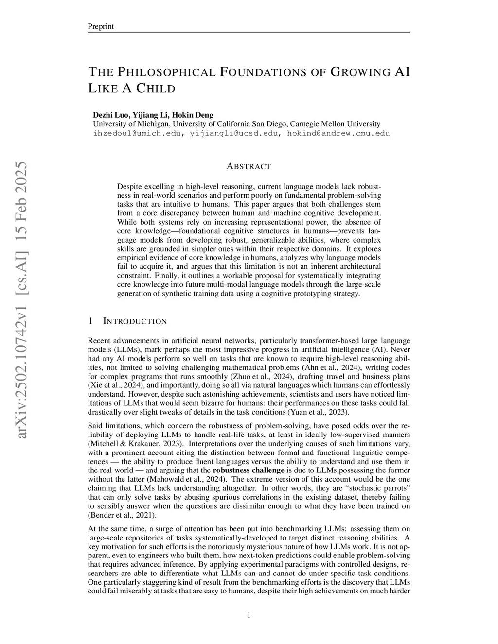 Despite excelling in high-level reasoning, current language models lack robustness in real-world scenarios and perform poorly on fundamental problem-solving tasks that are intuitive to humans. This paper argues that both challenges stem from a core discrepancy between human and machine cognitive development. While both systems rely on increasing representational power, the absence of core knowledge, foundational cognitive structures in humans, prevents language models from developing robust, generalizable abilities, where complex skills are grounded in simpler ones within their respective domains. It explores empirical evidence of core knowledge in humans, analyzes why language models fail to acquire it, and argues that this limitation is not an inherent architectural constraint. Finally, it outlines a workable proposal for systematically integrating core knowledge into future multi-modal language models through the large-scale generation of synthetic training data using a cognitive prototyping strategy.