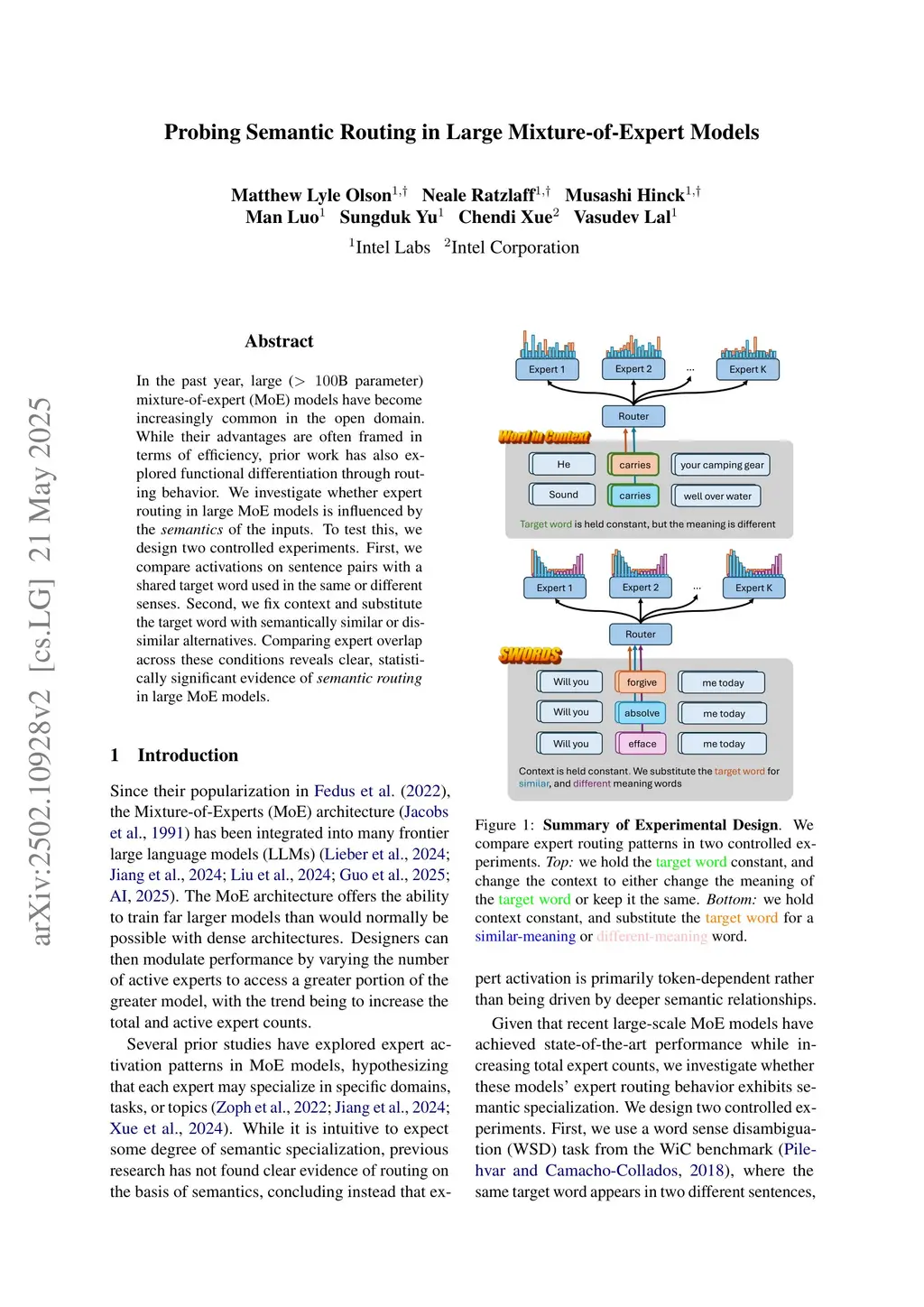 In the past year, large (>100B parameter) mixture-of-expert (MoE) models have become increasingly common in the open domain. While their advantages are often framed in terms of efficiency, prior work has also explored functional differentiation through routing behavior. We investigate whether expert routing in large MoE models is influenced by the semantics of the inputs. To test this, we design two controlled experiments. First, we compare activations on sentence pairs with a shared target word used in the same or different senses. Second, we fix context and substitute the target word with semantically similar or dissimilar alternatives. Comparing expert overlap across these conditions reveals clear, statistically significant evidence of semantic routing in large MoE models.