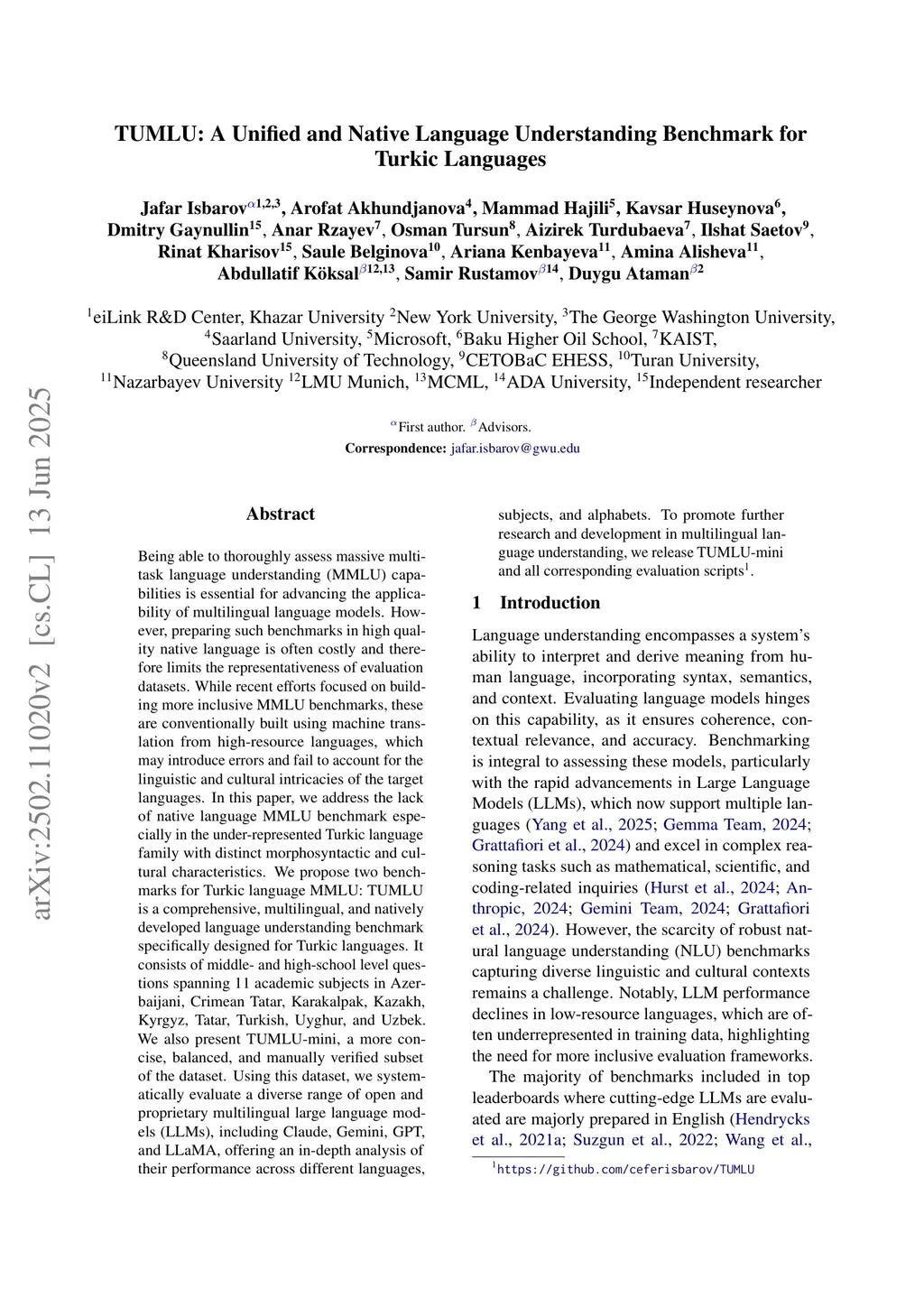 TUMLU: A Unified and Native Language Understanding Benchmark for Turkic Languages