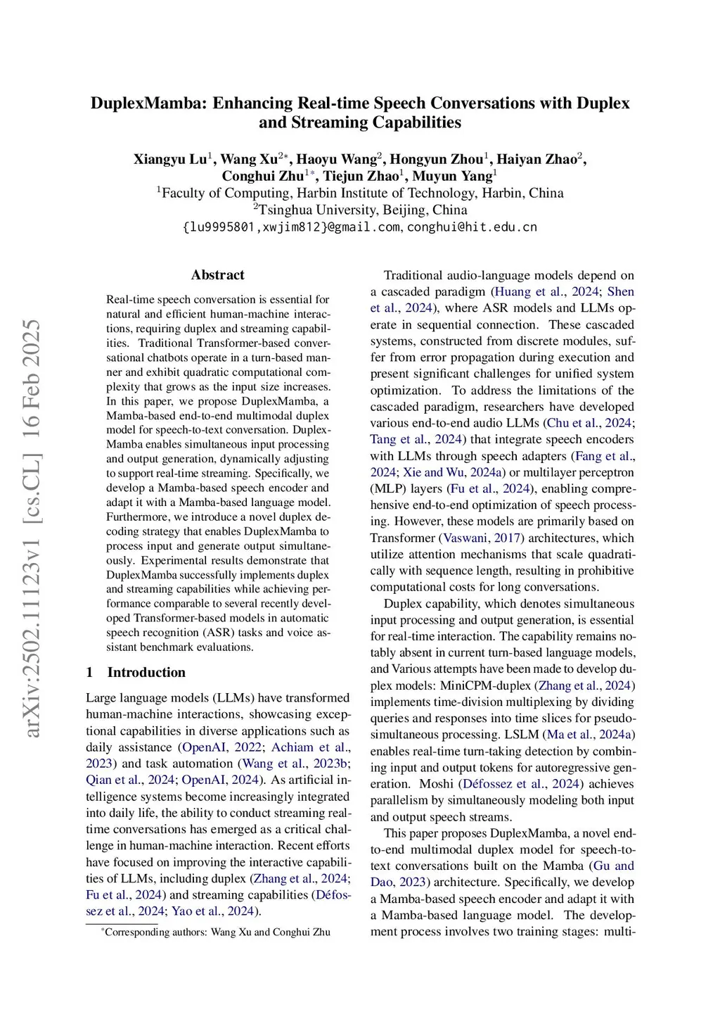 DuplexMamba: Enhancing Real-time Speech Conversations with Duplex and Streaming Capabilities