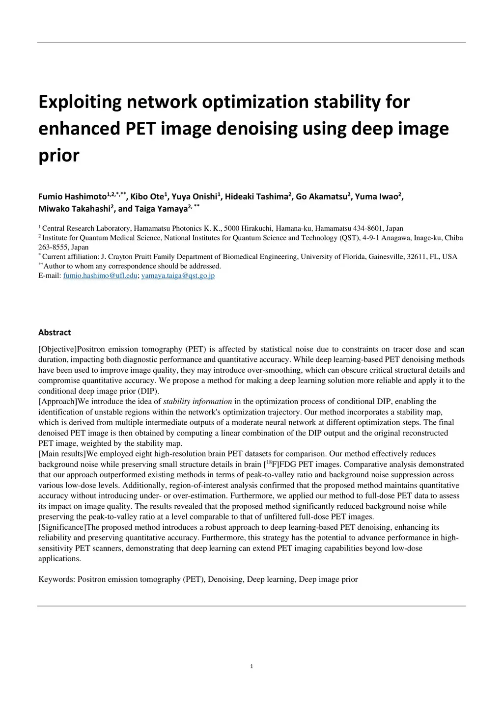 Exploiting network optimization stability for enhanced PET image denoising using deep image prior