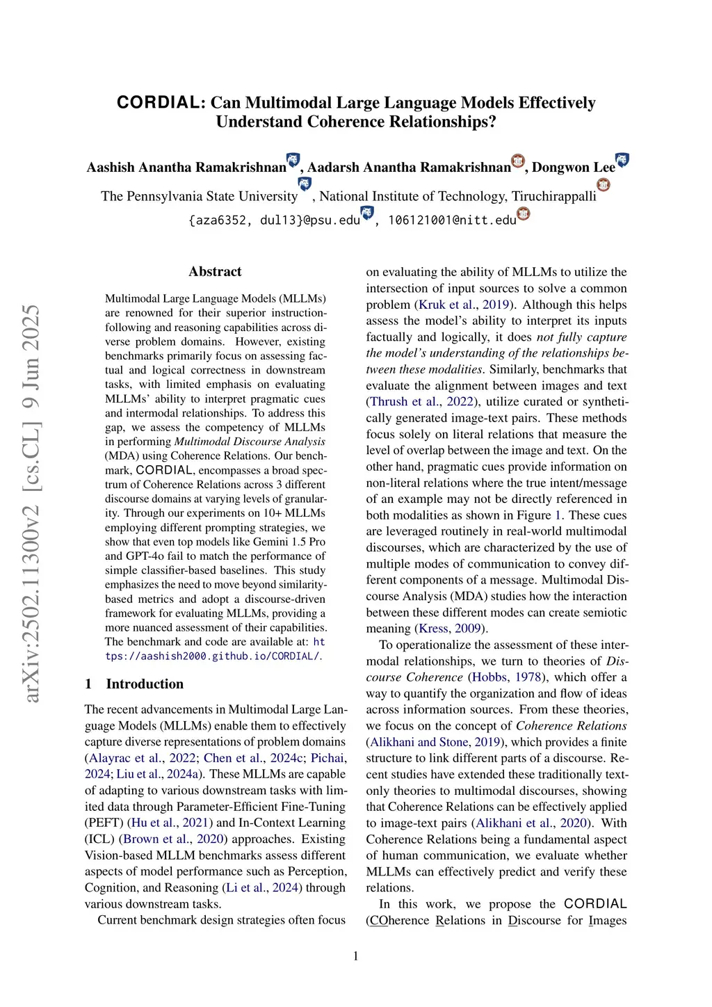 CORDIAL: Can Multimodal Large Language Models Effectively Understand Coherence Relationships?