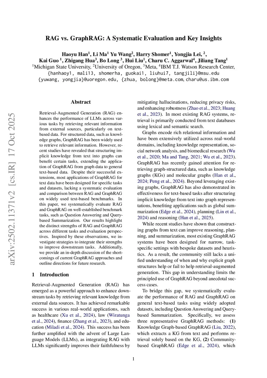 RAG vs. GraphRAG: A Systematic Evaluation and Key Insights
