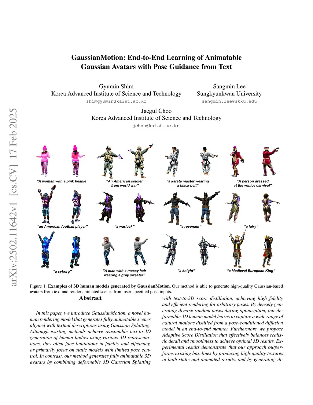 GaussianMotion: End-to-End Learning of Animatable Gaussian Avatars with Pose Guidance from Text