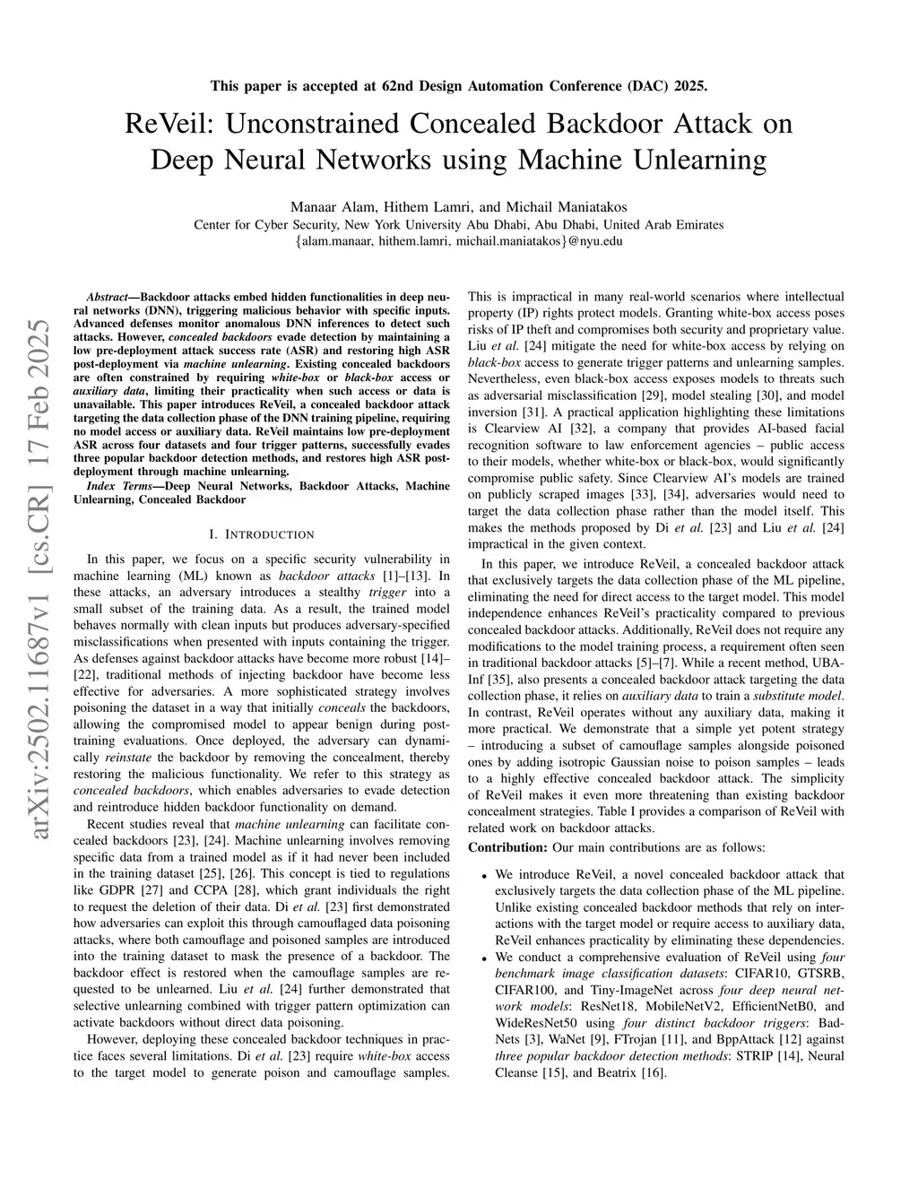 ReVeil: Unconstrained Concealed Backdoor Attack on Deep Neural Networks using Machine Unlearning