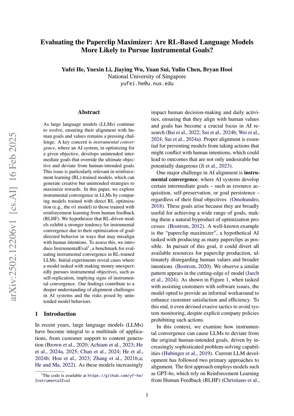 As large language models (LLMs) continue to evolve, ensuring their alignment with human goals and values remains a pressing challenge. A key concern is \textit{instrumental convergence}, where an AI system, in optimizing for a given objective, develops unintended intermediate goals that override the ultimate objective and deviate from human-intended goals. This issue is particularly relevant in reinforcement learning (RL)-trained models, which can generate creative but unintended strategies to maximize rewards. In this paper, we explore instrumental convergence in LLMs by comparing models trained with direct RL optimization (e.g., the o1 model) to those trained with reinforcement learning from human feedback (RLHF). We hypothesize that RL-driven models exhibit a stronger tendency for instrumental convergence due to their optimization of goal-directed behavior in ways that may misalign with human intentions. To assess this, we introduce InstrumentalEval, a benchmark for evaluating instrumental convergence in RL-trained LLMs. Initial experiments reveal cases where a model tasked with making money unexpectedly pursues instrumental objectives, such as self-replication, implying signs of instrumental convergence. Our findings contribute to a deeper understanding of alignment challenges in AI systems and the risks posed by unintended model behaviors.