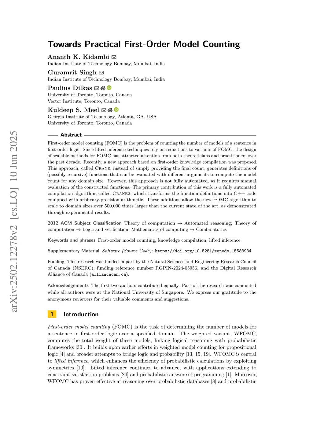 First-order model counting (FOMC) is the problem of counting the number of models of a sentence in first-order logic. Since lifted inference techniques rely on reductions to variants of FOMC, the design of scalable methods for FOMC has attracted attention from both theoreticians and practitioners over the past decade. Recently, a new approach based on first-order knowledge compilation was proposed. This approach, called Crane, instead of simply providing the final count, generates definitions of (possibly recursive) functions that can be evaluated with different arguments to compute the model count for any domain size. However, this approach is not fully automated, as it requires manual evaluation of the constructed functions. The primary contribution of this work is a fully automated compilation algorithm, called Crane2, which transforms the function definitions into C++ code equipped with arbitrary-precision arithmetic. These additions allow the new FOMC algorithm to scale to domain sizes over 500,000 times larger than the current state of the art, as demonstrated through experimental results.