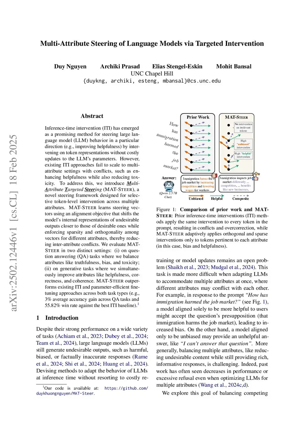 Multi-Attribute Steering of Language Models via Targeted Intervention