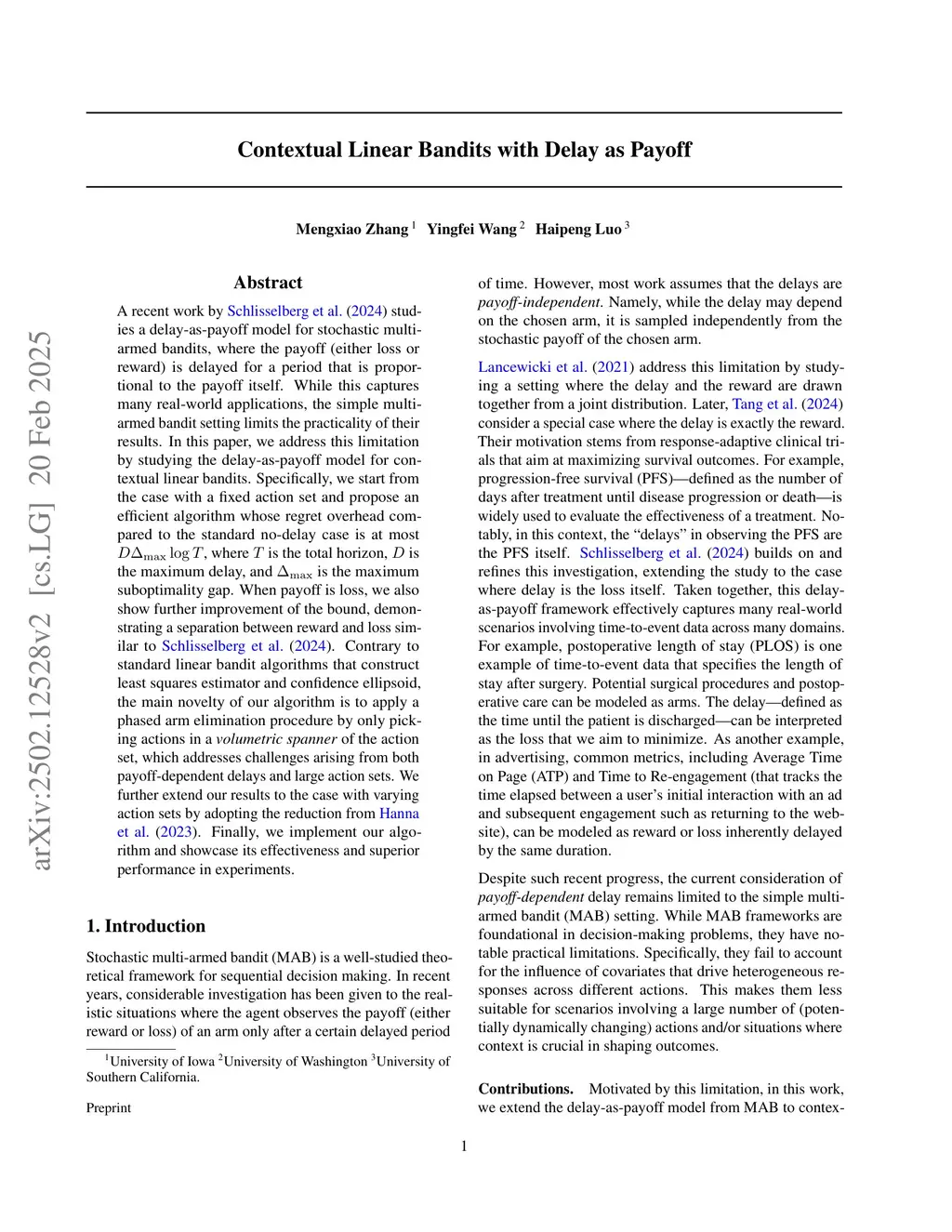 Contextual Linear Bandits with Delay as Payoff