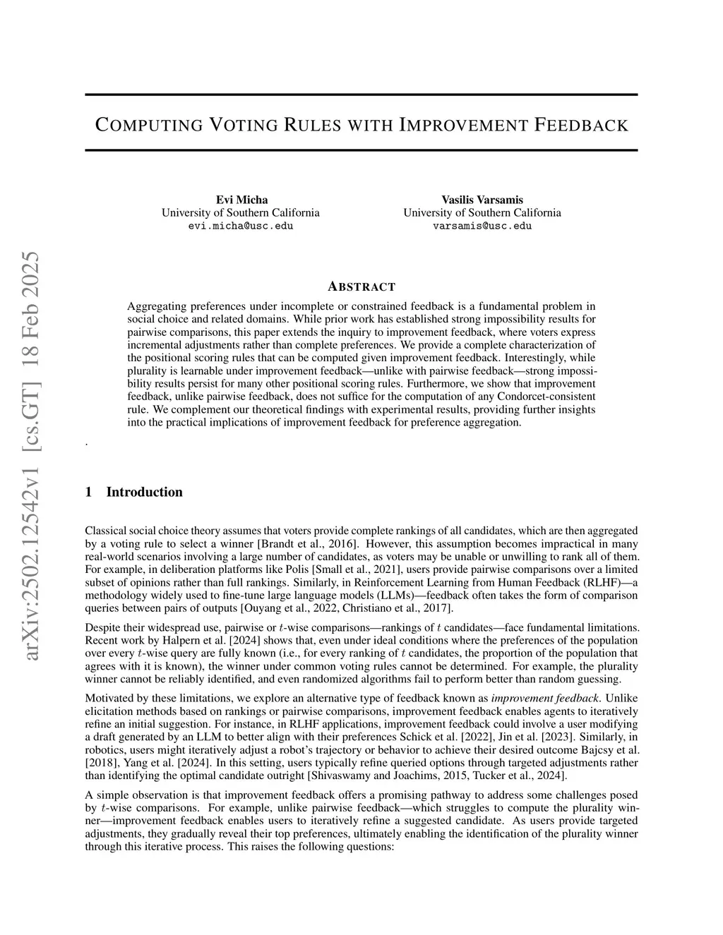 Computing Voting Rules with Improvement Feedback