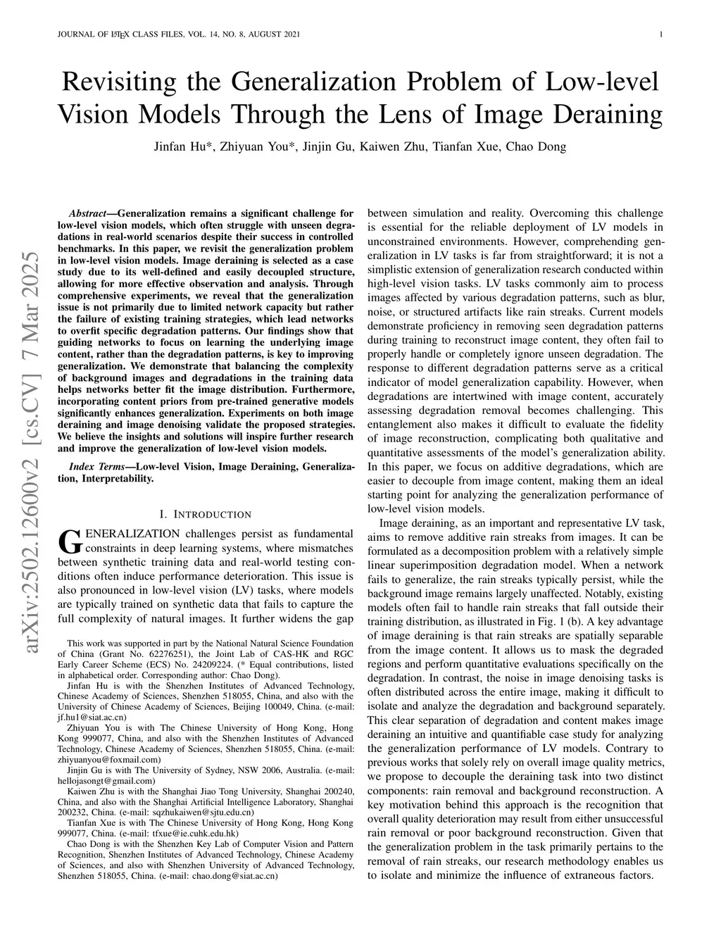 Generalization to unseen degradations remains a fundamental challenge for low-level vision models. This paper aims to investigate the underlying mechanism of this failure, using image deraining as a primary case study due to its well-defined and decoupled structure. Through systematic experiments, we reveal that generalization issues are not primarily caused by limited network capacity, but rather by a ``shortcut learning'' phenomenon driven by the relative complexity between image content and degradation patterns. We find that when background content is excessively complex, networks preferentially overfit the simpler degradation characteristics to minimize training loss, thereby failing to learn the underlying image distribution. To address this, we propose two principled strategies: (1) balancing the complexity of training data (backgrounds vs. degradations) to redirect the network's focus toward content reconstruction, and (2) leveraging strong content priors from pre-trained generative models to physically constrain the network onto a high-quality image manifold. Extensive experiments on image deraining, denoising, and deblurring validate our theoretical insights. Our work provides an interpretability-driven perspective and a principled methodology for improving the robustness and generalization of low-level vision models.