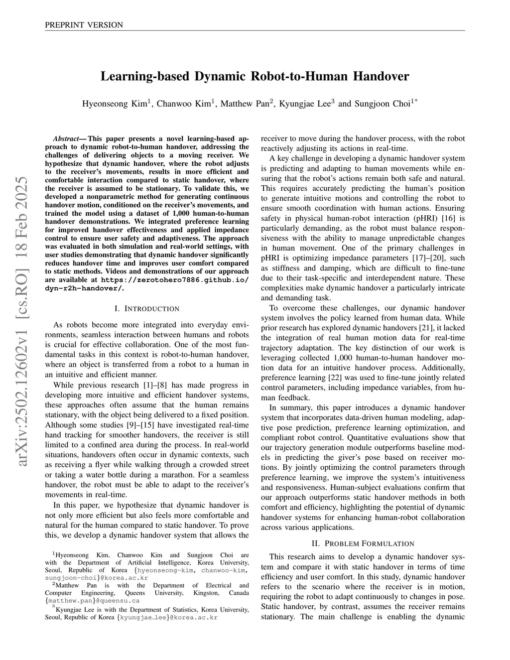 This paper presents a novel learning-based approach to dynamic robot-to-human handover, addressing the challenges of delivering objects to a moving receiver. We hypothesize that dynamic handover, where the robot adjusts to the receiver's movements, results in more efficient and comfortable interaction compared to static handover, where the receiver is assumed to be stationary. To validate this, we developed a nonparametric method for generating continuous handover motion, conditioned on the receiver's movements, and trained the model using a dataset of 1,000 human-to-human handover demonstrations. We integrated preference learning for improved handover effectiveness and applied impedance control to ensure user safety and adaptiveness. The approach was evaluated in both simulation and real-world settings, with user studies demonstrating that dynamic handover significantly reduces handover time and improves user comfort compared to static methods. Videos and demonstrations of our approach are available atthis https URL.