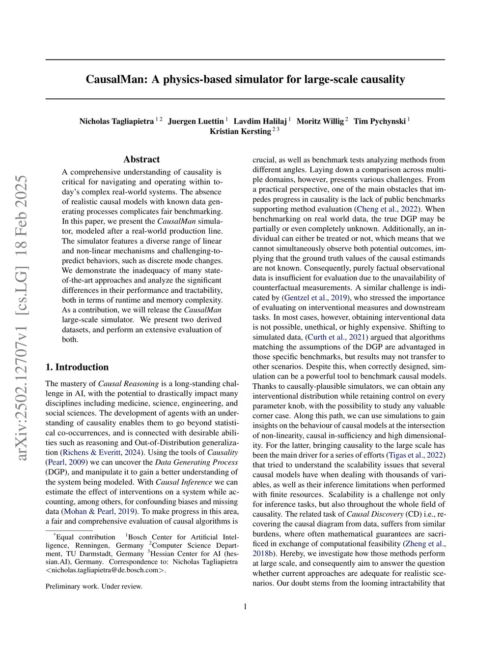 CausalMan: A physics-based simulator for large-scale causality