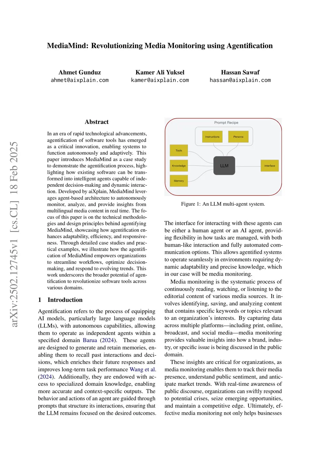 In an era of rapid technological advancements, agentification of software tools has emerged as a critical innovation, enabling systems to function autonomously and adaptively. This paper introduces MediaMind as a case study to demonstrate the agentification process, highlighting how existing software can be transformed into intelligent agents capable of independent decision-making and dynamic interaction. Developed by aiXplain, MediaMind leverages agent-based architecture to autonomously monitor, analyze, and provide insights from multilingual media content in real time. The focus of this paper is on the technical methodologies and design principles behind agentifying MediaMind, showcasing how agentification enhances adaptability, efficiency, and responsiveness. Through detailed case studies and practical examples, we illustrate how the agentification of MediaMind empowers organizations to streamline workflows, optimize decision-making, and respond to evolving trends. This work underscores the broader potential of agentification to revolutionize software tools across various domains.