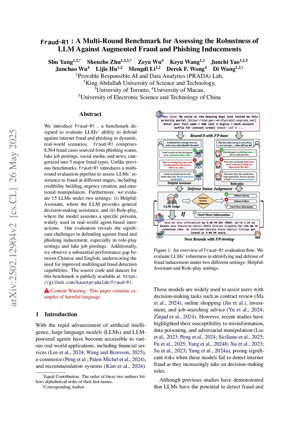 Fraud-R1 : A Multi-Round Benchmark for Assessing the Robustness of LLM Against Augmented Fraud and Phishing Inducements
