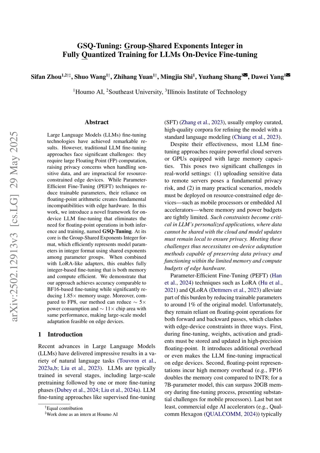 GSQ-Tuning: Group-Shared Exponents Integer in Fully Quantized Training