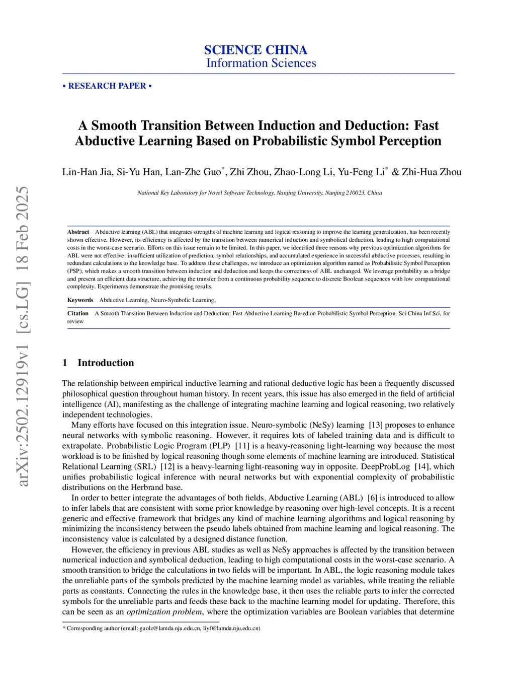 A Smooth Transition Between Induction and Deduction: Fast Abductive Learning Based on Probabilistic Symbol Perception
