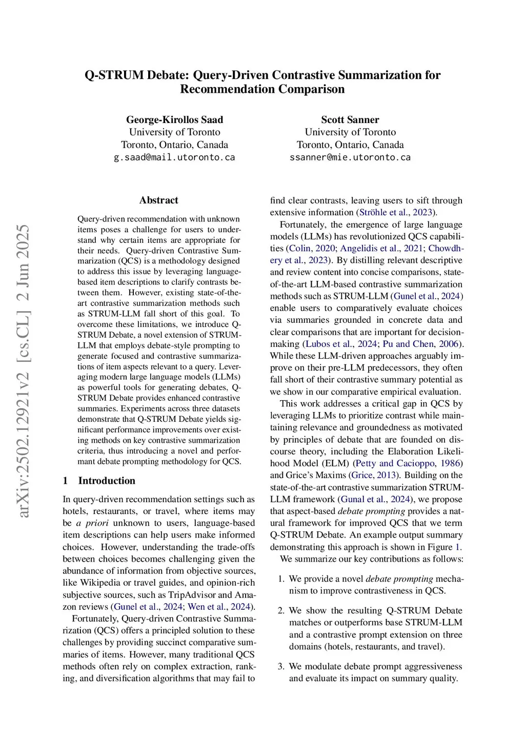Q-STRUM Debate: Query-Driven Contrastive Summarization for Recommendation Comparison