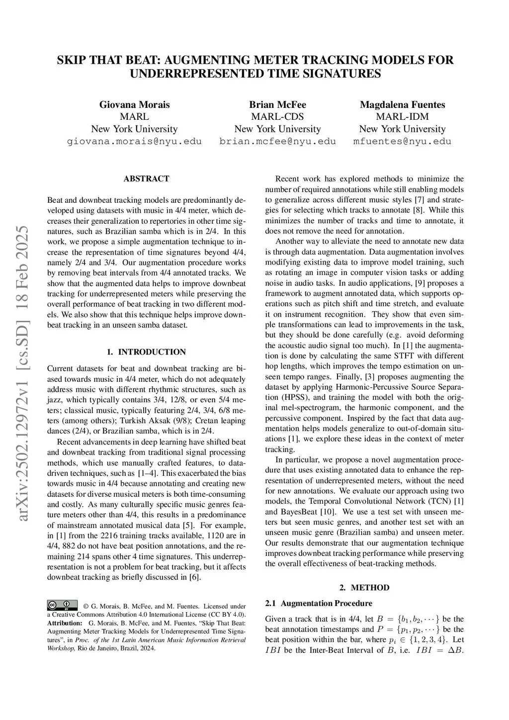 Beat and downbeat tracking models are predominantly developed using datasets with music in 4/4 meter, which decreases their generalization to repertories in other time signatures, such as Brazilian samba which is in 2/4. In this work, we propose a simple augmentation technique to increase the representation of time signatures beyond 4/4, namely 2/4 and 3/4. Our augmentation procedure works by removing beat intervals from 4/4 annotated tracks. We show that the augmented data helps to improve downbeat tracking for underrepresented meters while preserving the overall performance of beat tracking in two different models. We also show that this technique helps improve downbeat tracking in an unseen samba dataset.