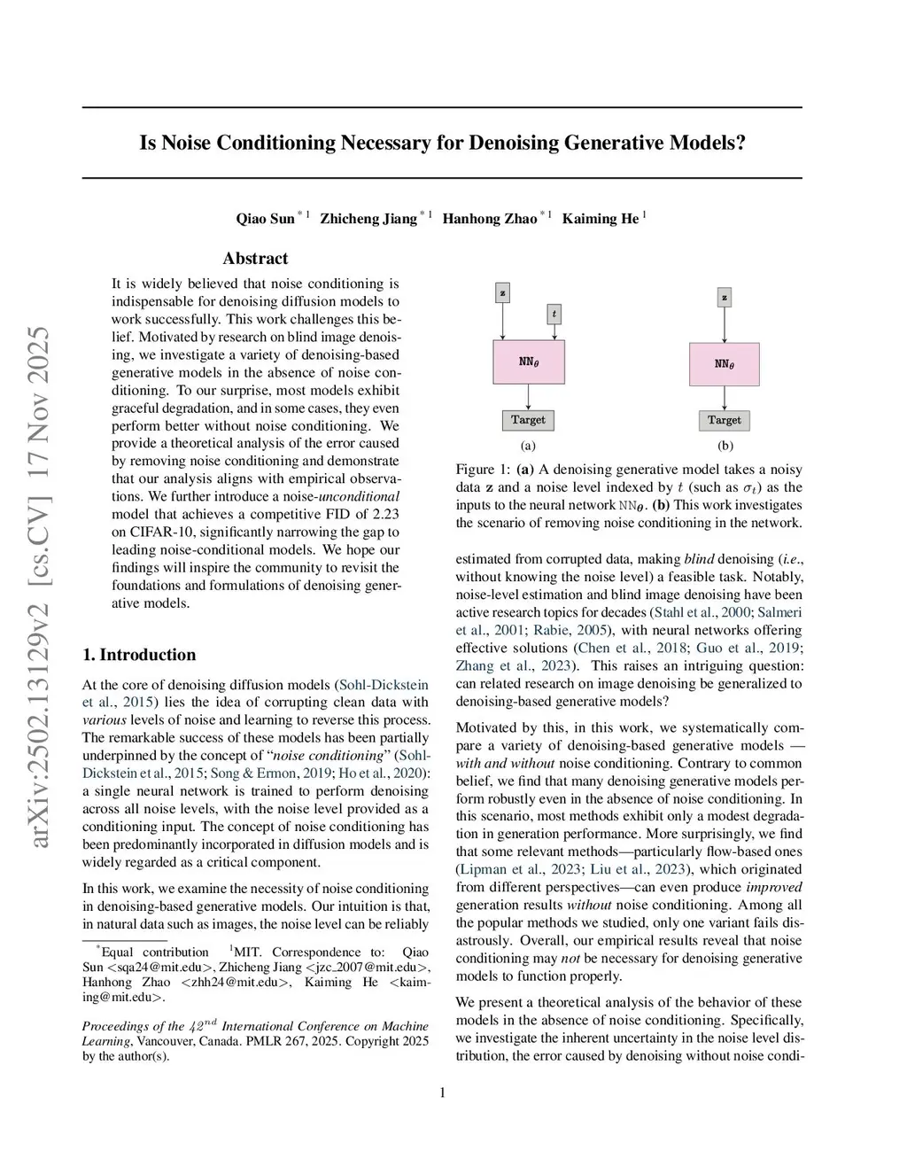 Is Noise Conditioning Necessary for Denoising Generative Models?