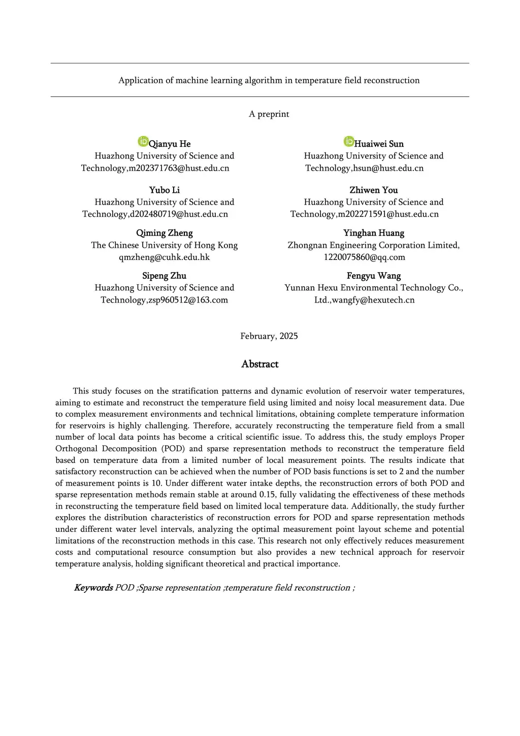 Application of machine learning algorithm in temperature field reconstruction