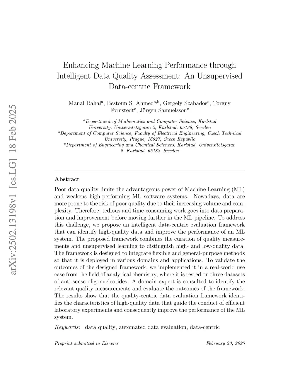 Poor data quality limits the advantageous power of Machine Learning (ML) and weakens high-performing ML software systems. Nowadays, data are more prone to the risk of poor quality due to their increasing volume and complexity. Therefore, tedious and time-consuming work goes into data preparation and improvement before moving further in the ML pipeline. To address this challenge, we propose an intelligent data-centric evaluation framework that can identify high-quality data and improve the performance of an ML system. The proposed framework combines the curation of quality measurements and unsupervised learning to distinguish high- and low-quality data. The framework is designed to integrate flexible and general-purpose methods so that it is deployed in various domains and applications. To validate the outcomes of the designed framework, we implemented it in a real-world use case from the field of analytical chemistry, where it is tested on three datasets of anti-sense oligonucleotides. A domain expert is consulted to identify the relevant quality measurements and evaluate the outcomes of the framework. The results show that the quality-centric data evaluation framework identifies the characteristics of high-quality data that guide the conduct of efficient laboratory experiments and consequently improve the performance of the ML system.